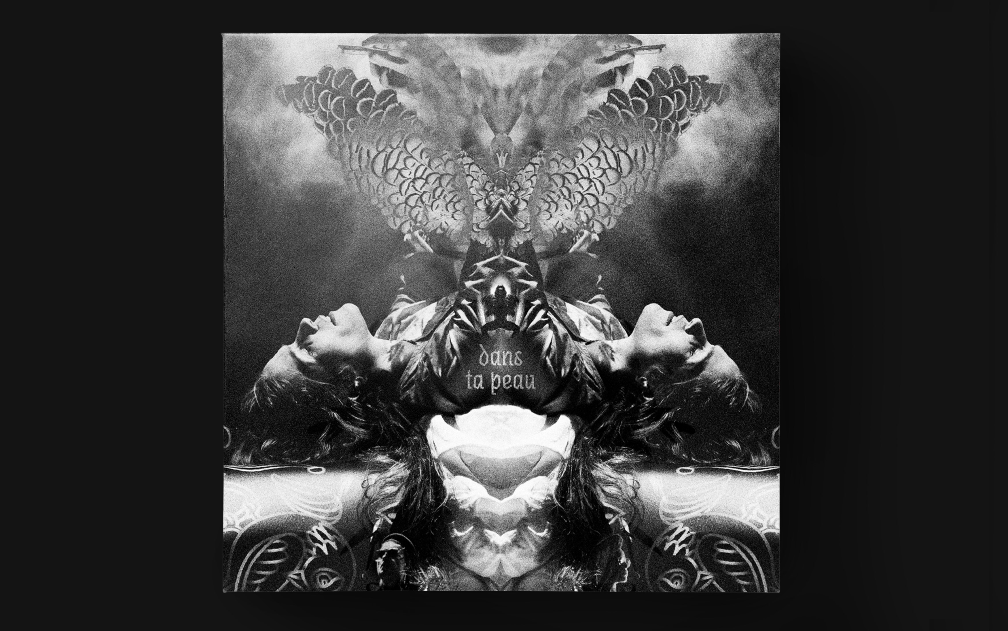 Graphic creation of Romain Tiriakian's vinyl album, original soundtrack to the show "Dans ta Peau," a musical, fantastical, and strange tale by Julie Ménard and Romain Tiriakian.