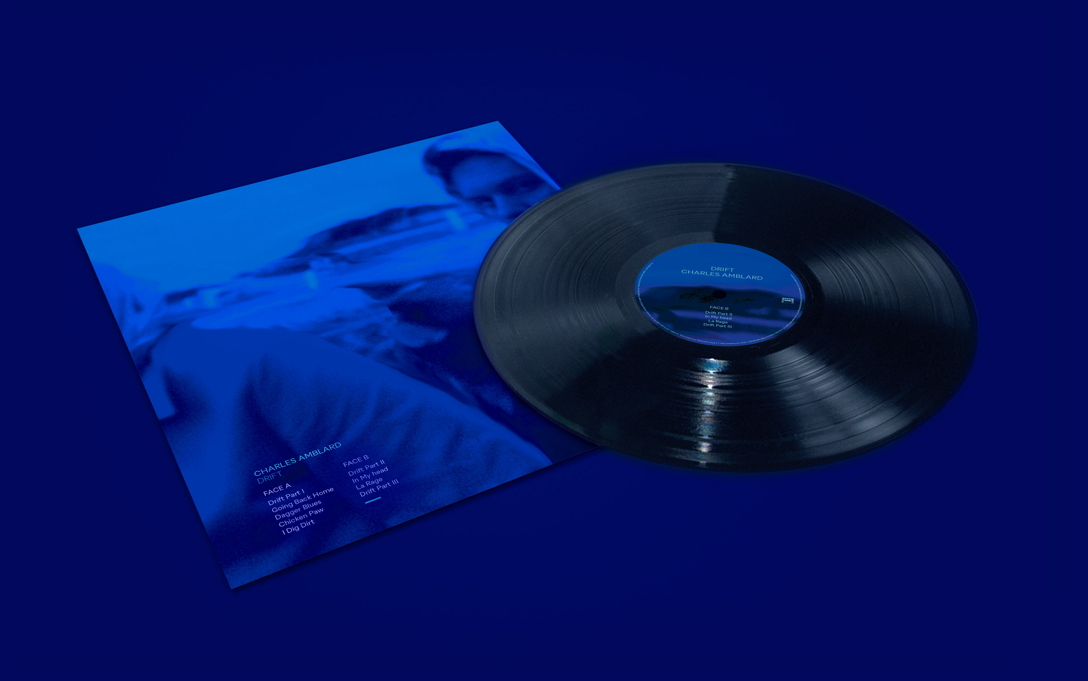 Création graphique de l’album “Drift” de Charles Amblard en format vinyle.