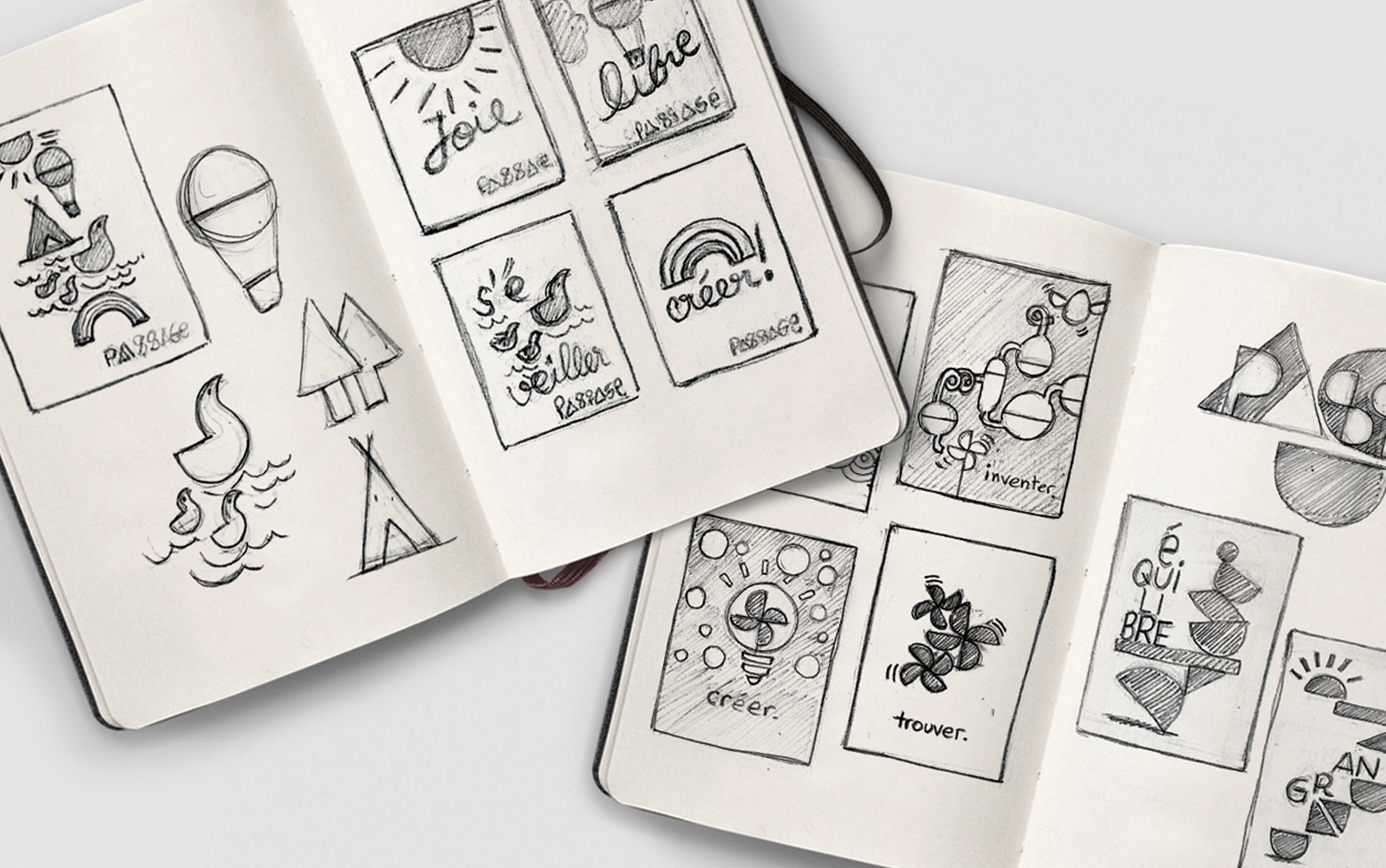 Creation of the identity and graphic universe of Passage, Montessori activity workshop for naughty children.